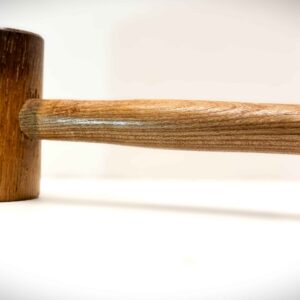 Maillet en chêne de 300 ans (issu d’une ancienne charpente), manche en orme rose, bois tourné.