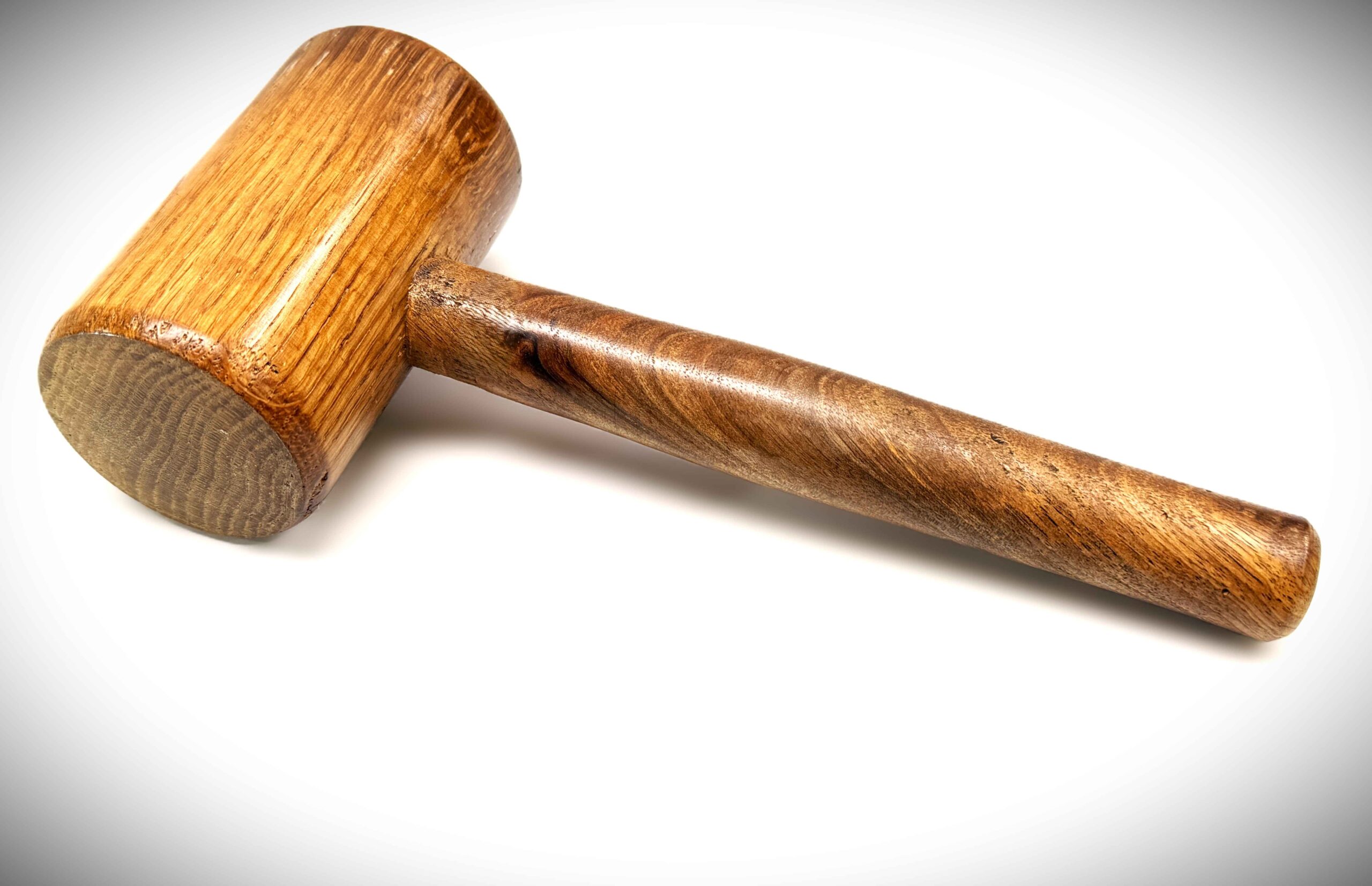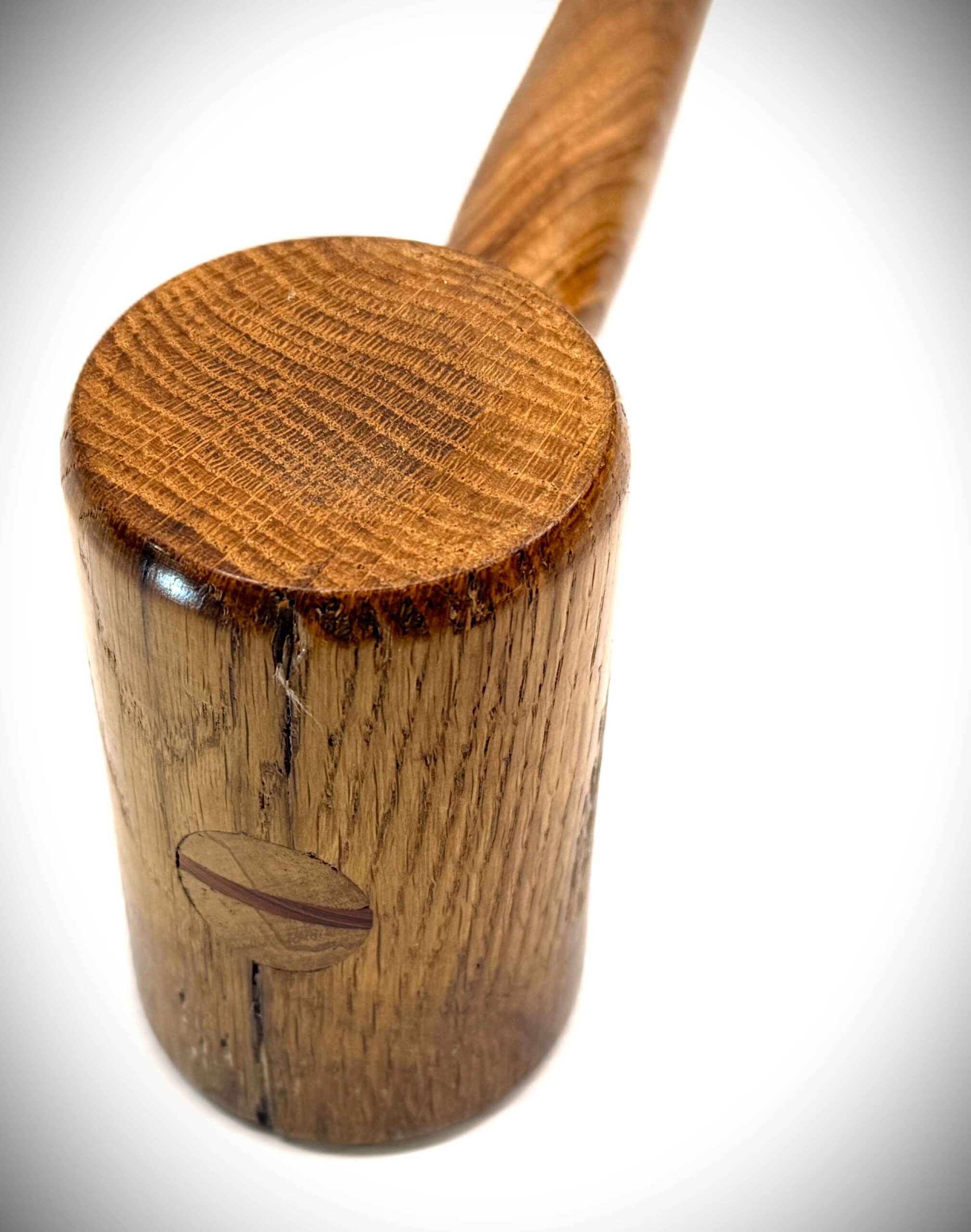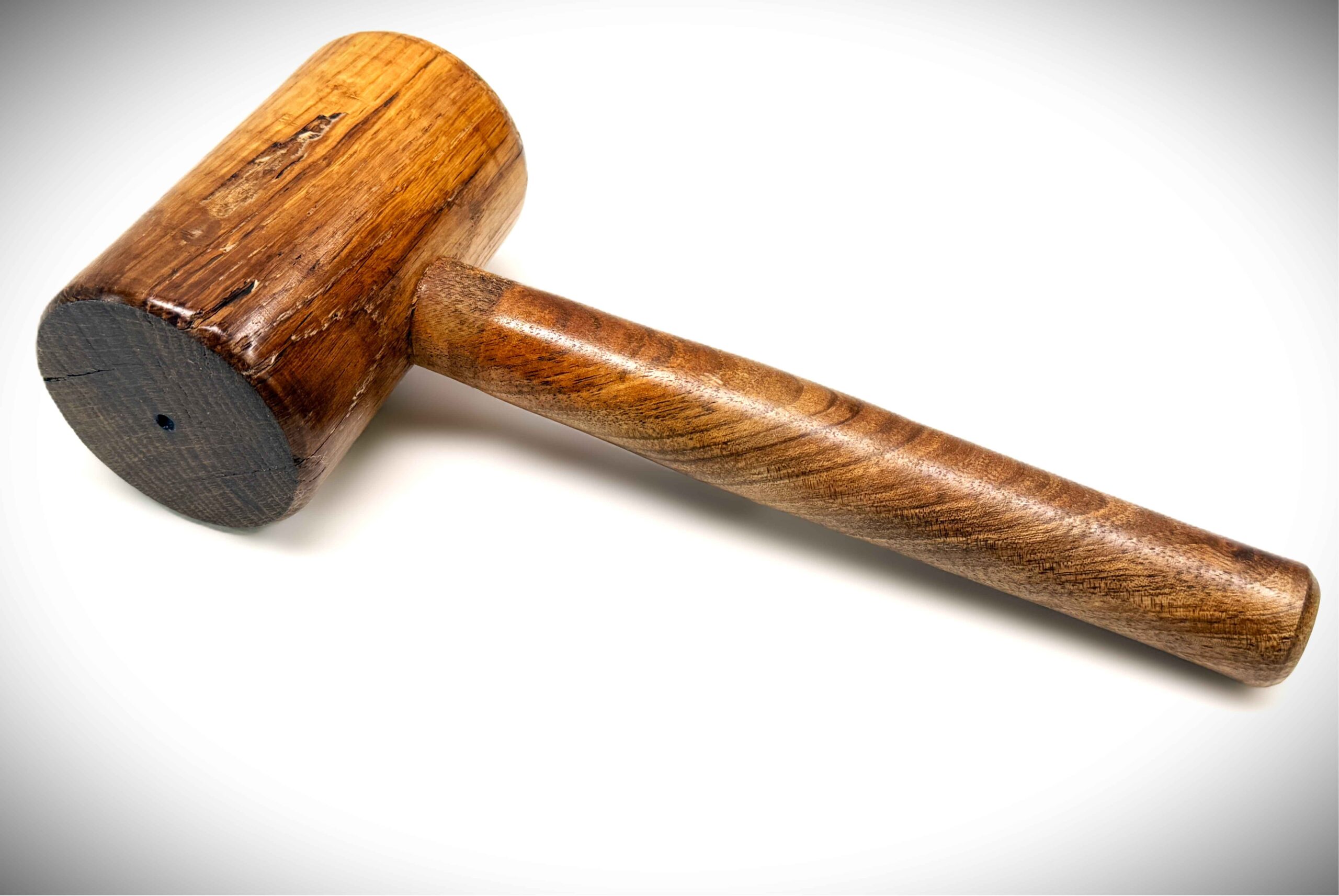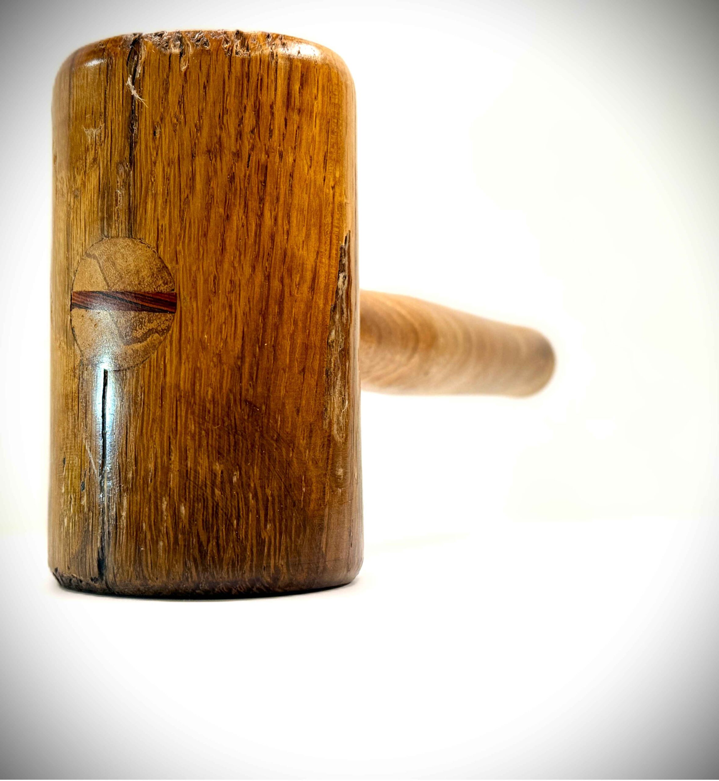 Maillet en chêne de 300 ans (issu d’une ancienne charpente), manche en noyer noir, bois tourné.