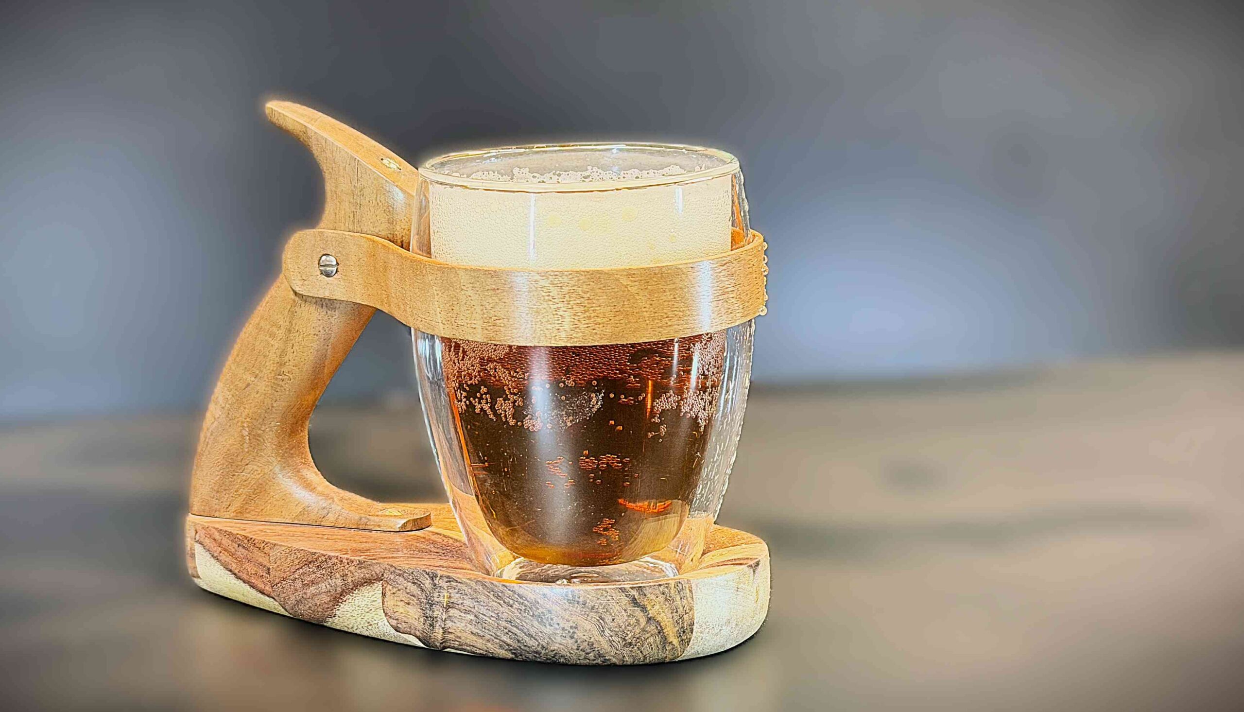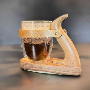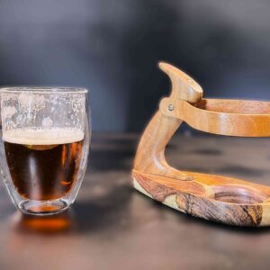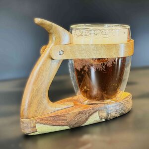 Son design naturel met en valeur les nuances chaleureuses du bois tout en accueillant parfaitement un verre isotherme, pour conserver vos boissons à la bonne température avec style. Une pièce unique, durable et authentique, idéale pour les amateurs de beaux objets.