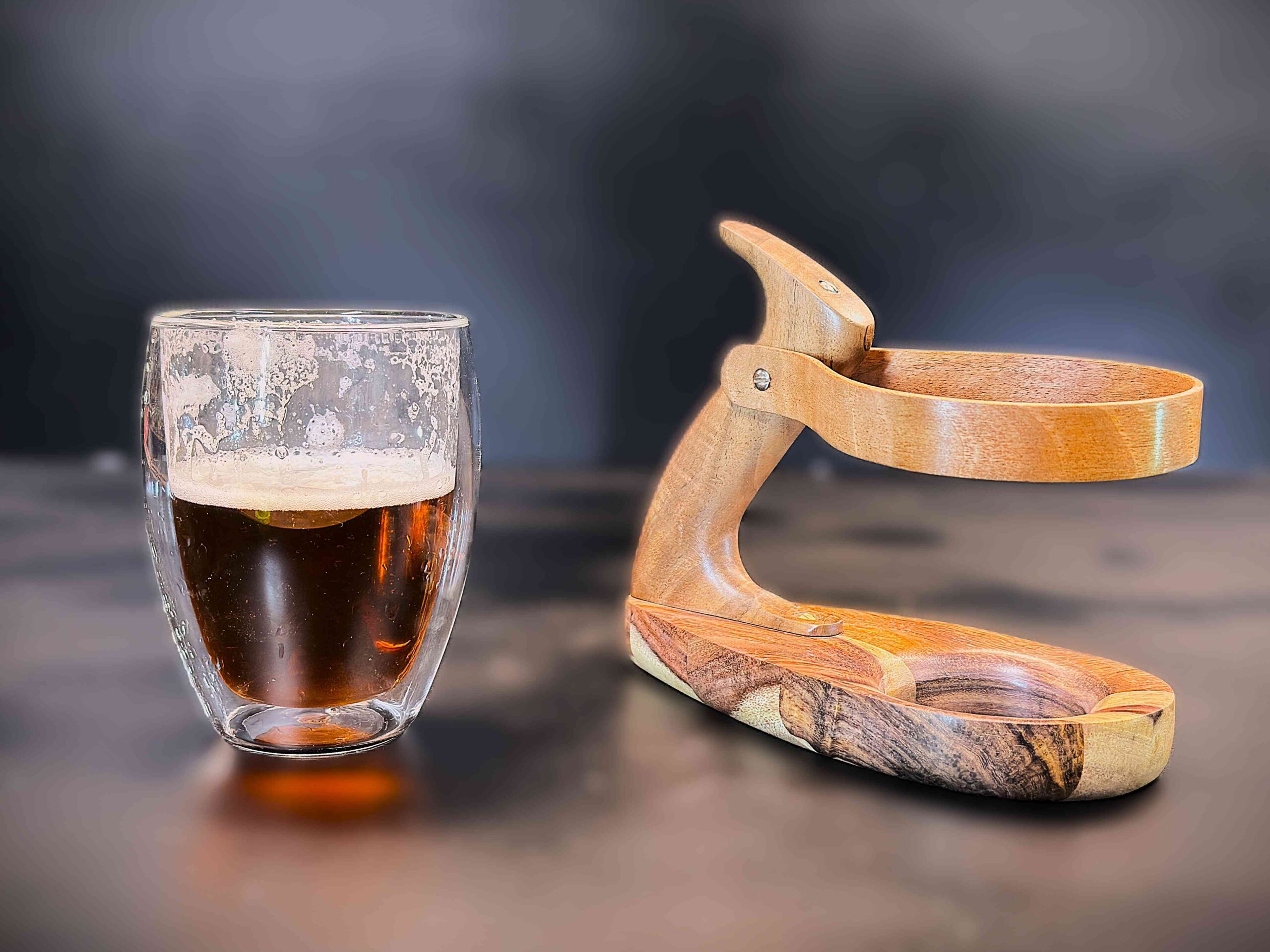 Support de tasse en palissandre et noyer & verre isotherme