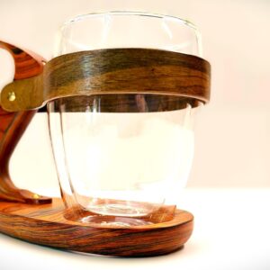 Support de tasse en Cocobolo, lanière en noyer & verre isotherme